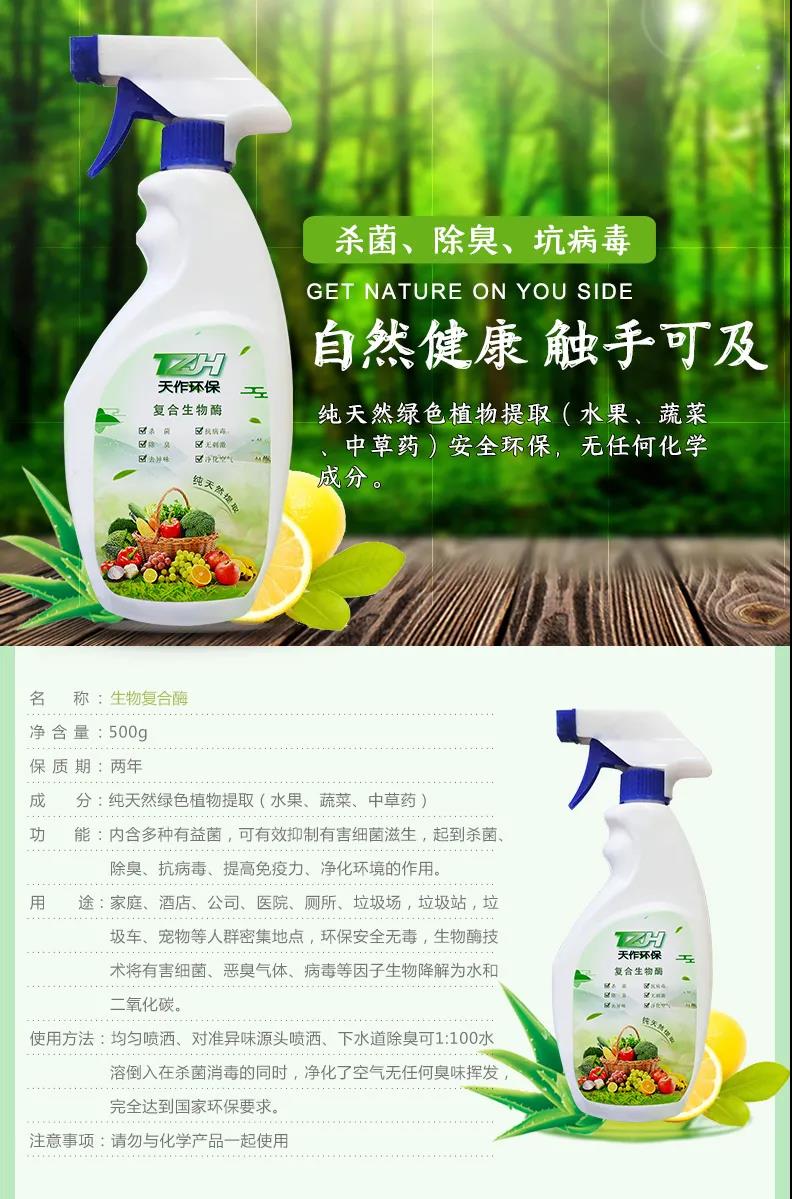 而生物酶产品,则是综合了上述产品优点的同时,也规避了这些产品的缺陷。生物酶产品通过对污染物进行催化,从根源上解决问题,环保高效,活性持久,并且本身对环境没有任何危害。天作环保看到了生物酶的独特优势,在此基础上,研发了TM复合生物酶,在常温下即可进行催化,且安全无毒,达到了饮用级标准,产品通过雾化、捕捉、催化的过程,实现对污染物的处理和分解,产品可稀释50-100倍使用,成本更低,经济效益可观。