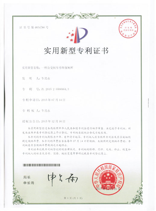实用新型专利证书