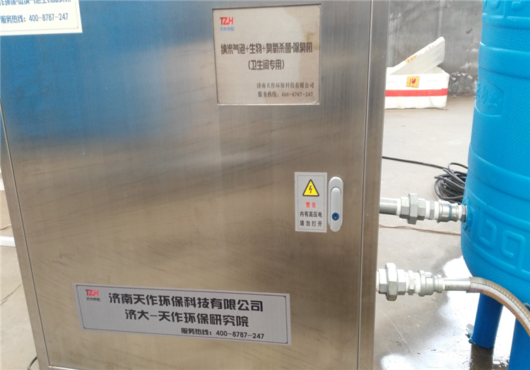 “济南天作环保科技有限公司”针对公共卫生间的难闻气味,经过多年研究试验,研制出卫生间专用智能除臭机,该机器运用了先进的智能和生物结合技术,解决了卫生间的难闻气味,在冲洗时通过智能增压,同时加入生物酶(纯水果、植物提取,非化学品)和臭氧,利用生物酶菌进行除臭利用臭氧进行杀菌,机器运行同时通过高压剪切技术,产生微纳米气泡将臭氧和生物酶充分混合,由于微纳米气泡的产生也节省了部分水资源,市民在使用卫生间时,洗手水里面是富含生物酶的臭氧水,洗手同时也起到消毒杀菌作用,因此不需要使用肥皂和洗手液等化学用品,减省了肥皂和化学品使用同时也降低了废水的二次污染,洗手水及冲洗水冲入下水道,也起到对下水道的净化作用,通过长期实验证明,卫生间安装本产品3天臭味消失,3个月后不仅卫生间臭味消失,还散发出阵阵清香气味,直接颠覆了循着气味找厕所的尴尬局面,包括对下水道里面的长期沉积臭气也能逐渐消除,卫生间废水排放同时对流经管道进行了净化,如市区公厕、办公楼卫生间、宾馆、饭店等公共卫生间全部使用本产品后将对整个市区污水管网起到一定的净化作用,也对环境保护增加一定的助力功能,该产品使用后减轻了管理员的劳动强度,不需要点香放置卫生球和开启大功率排风扇等措施,在减轻劳动强度同时节约了相关添加物品的费用,减省排风用电70%左右,该产品在杀菌除臭同时起到了节能降耗的功能,也大幅降低了管理员的劳动强度,经过计算,卫生间使用该产品后,管理员无需固定管理,可以巡回管理多个卫生间,因此也节省了大量的管理费用,该产品使用后每个公共卫生间,年综合节约费用平均可达到1.5万元,在实现环保卫生条件下又为社会节约了大量资源,是一款服务大众的高科技智能产品,值得大面积推广。