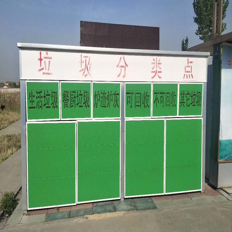 “济南天作环保科技有限公司”针对生活垃圾强制分类和资源化利用问题,研制出钢结构垃圾分类服务站,站点结构尺寸为长6米,高2.7米,厚2.2米,框架采用防腐镀锌钢管组装,墙体采用雕花铝塑板包装,铝合金扣边装饰,设立管理间、可回收资源分类间,大件废纸收纳间,共分4个投放口,每个分类间容积4.5立方米,有充足的空间供管理员整理存放,存够一定数量后集中分类销售,房间装有臭氧除臭杀菌系统,可对所有垃圾进行杀菌消毒,系统采用自动化控制无需专人管理。房子侧面设有3个垃圾桶,1个用来收集有害物品,2个用来收集厨余可腐垃圾,垃圾桶顶部设有雨棚防止雨水侵蚀。可腐垃圾经过发酵会产生恶臭气味,会招来大量蚊蝇滋生,也是蚊蝇滋生发源地,为解决这一问题,设计了臭氧杀菌和生物除臭技术,臭氧负责均匀喷洒垃圾桶顶部空间,垃圾桶内壁喷洒天作环保专用生物除臭剂(DM复合酶),管理员可在每次倾倒转运时喷洒垃圾桶内壁,具有活性的生物酶会将桶内臭气源降解,在垃圾逐步投放时起到杀灭病原菌的功能,本设备采用了臭氧消杀空间细菌和臭气,生物酶消杀垃圾桶内壁细菌和臭气技术,因此使用了本设备后,垃圾桶周围也闻不到任何异味,通过两种生物和物理除臭杀菌技术处理,加上环保型外观设计,选择铝塑压花板包装,人性化的收纳模式,方便了大家分类投放,给大家营造一个干净卫生的垃圾收集环境。